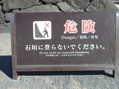 熊本城にて、2015年10月撮影。 結構石垣の角度が急なので、「いや、登らないよね」と、一緒に行った親戚一同で話していたら、案内してくれたタクシーの運転手さんが、「小学校の修学旅行で来た時、皆で登って怒られました」という、驚きのエピソードを披露!…