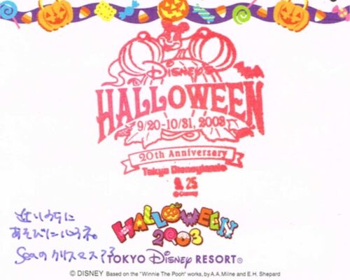 東京ディズニーランド(2003.9) 新カテゴリー、好評のようなので(←当社比)、第2弾です。 2003年の東京ディズニーランドの、ハロウィン用記念スタンプです。 友人が送ってくれたのですが、メッセージ通り、翌月にシーに行きました。その時のスタンプは、明日以…