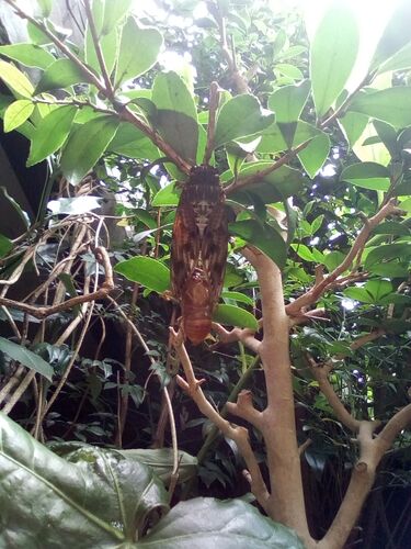 昨日、羽化前のアブラゼミの幼虫が物置の前でひっくり返っていたそうです。母が榊の枝につけてやったところ、自分で都合の良い場所まで移動し、羽化しました。 アブラゼミ① 懐中電灯の明かりで反射してしまったのもありますが、羽化したては羽はほぼ白いです…