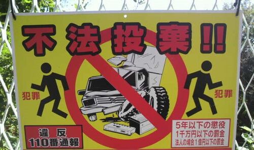 不法投棄!!(2020.11) 不法投棄は犯罪だよと、脅しまくっていますね。でも逃げているのがピクトさんだと、ちょっとだけ憎めない感じ。……とはいえもちろん、犯罪ですよ! margrete.hatenablog.com