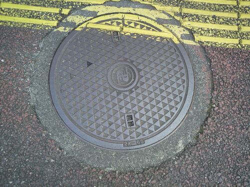 横浜市・建設省②(点字ブロック)(2021.3) これは昨日ご紹介した「横浜市・建設省①」と同じように見えて、三角の方向(?)が違います。ほとんど、間違い探しというか。 点字ブロックが、何となく投げやりに印刷されていますね。 manhole cover in Yokohama, Kan…