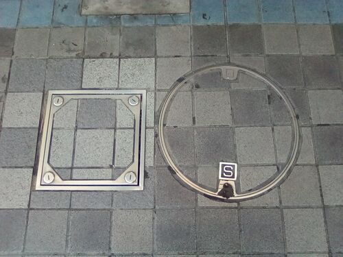 横須賀市・S(2022.3) ご紹介済みの、「横須賀市・W」のお仲間です。Sは、Sewage(下水、汚水)のSです。 横須賀市・正方形(2022.3) 「正方形」という分類名がひどいし、ご紹介するほど珍しいマンホール蓋でもないのですが、下の写真のように、上の「横浜市・S…