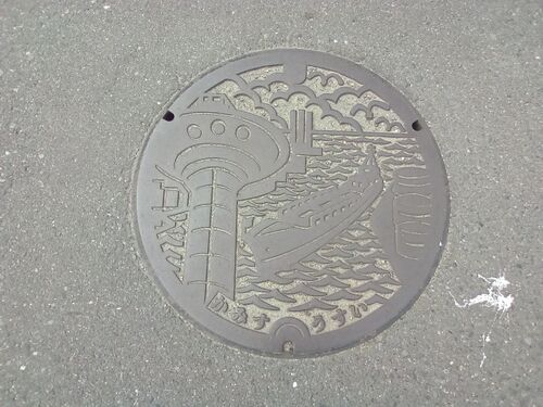 息栖神社近くで撮りました。 神栖市・うすい(2022.8) 鹿島臨海工業地帯の風景だそうです。展望塔、原油タンク、タンカー、カモメが盛り込まれています。 神栖市・上水・空気弁(2022.8) 神栖市の市章が付いています。 manhole covers in Kamisu, Ibaraki pref…