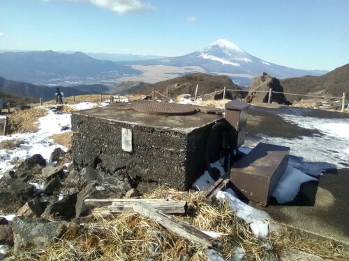 箱根町・水槽(2022.12) 駒ヶ岳山頂で撮りました。これも撮る角度によってはお顔系になるはずですが、写真を回転しても、いまいちでした。 ちなみにこの日、良く晴れていて、富士山がきれいでしたよ。上記のマンホール蓋とのツーショット(?)です。 駒ヶ岳山…