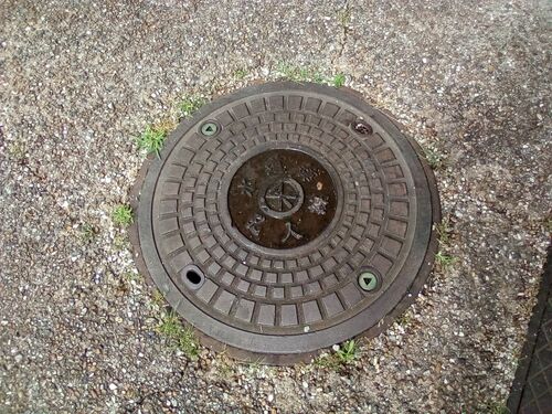 大阪市・人孔水道幹線(2023.6) 大阪市市章が曲がった向きで撮ってしまいました。右下から時計回りに「人孔水道幹線」と書かれています。 マンホールを日本語で人孔ということ、そしてそう書かれたマンホール蓋が存在することは知っていましたが、初めて実物…