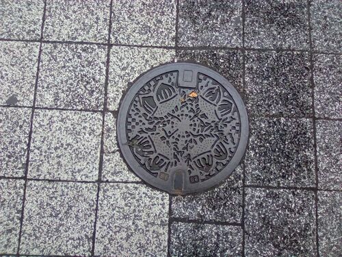 北九州市の市の木であるイチイガシの葉と実をデザインした、「北九州市・イチイガシ①」の小型版です。 北九州市・イチイガシ②-1(2023.12) 北九州市・イチイガシ②-2(2023.12) 色付きバージョンです。 manhole covers in Kitakyushu, Fukuoka prefecture, Japa…