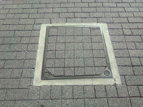 横浜市・四角①-4(2025.1) 周囲の舗装に擬態しているつもりが、出来ていません。だって周囲の舗装のブロックはほぼすべて長方形なのに、この人(?)の舗装はすべて正方形なんだもん(^-^; 横浜市・NTT④-4(2025.1) この人は上手に擬態していますね。 manhole cov…