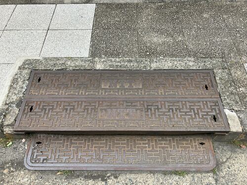 横浜市・NTT⑪(2024.5) 2段構えのマンホール蓋は、多分初めてです。下の段は側溝の蓋かとも思いましたが、そうすると電話線が水に浸かってしまうので、やはり3枚セットなのでしょう。 横浜市・東京市型③(2025.5) 「東京市型」とは投げやりな分類名ですが、仕…