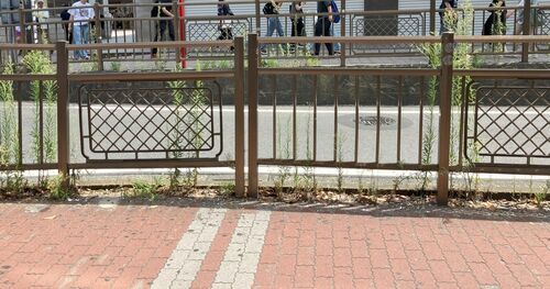 横浜市⑱(2025.8) 通りの向こうを歩いている方々をなるべく切り取ろうと思ったら、パノラマサイズみたいな形になってしまいました。 焼き網みたいなデザインとシンプルなデザインが交互に使われているガードパイプです。 margrete.hatenablog.com 本日ご紹介…