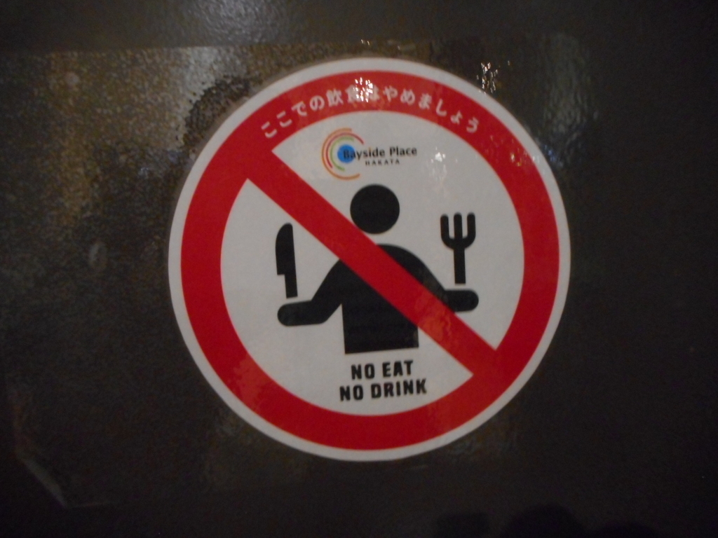 2018-11-09 【ピクトグラム】福岡市② ピクトグラム、標識 ベイサイドプレイス博多で、今回入手しました。 ……ナイフとフォークを使う勢いで飲食する人はいないのでは? 普通、飲食禁止のピクトグラムって、ハンバーガーとドリンクにバツ印が付いているとかのような気が(^_^;) しかも、このピクトグラムにはお仲間がいます。 うーん……。この2つのピクトグラムの作者、恐らく以前ご紹介したピクトグラムの作者と同じな気がします。 margrete.hatenablog.com