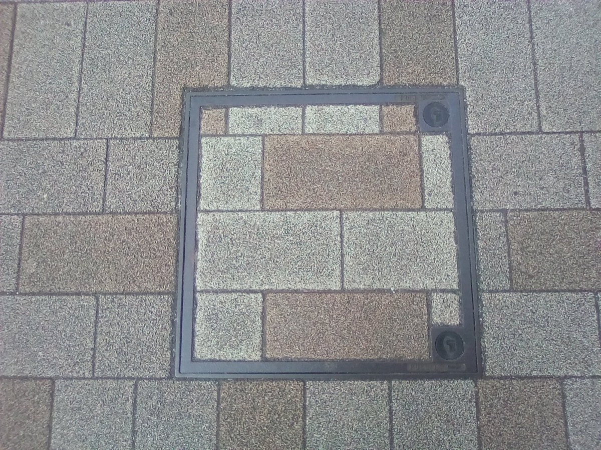 今日ご紹介するマンホール蓋は、昨日のものとセットです。昨日のやつの四角版(?)です。