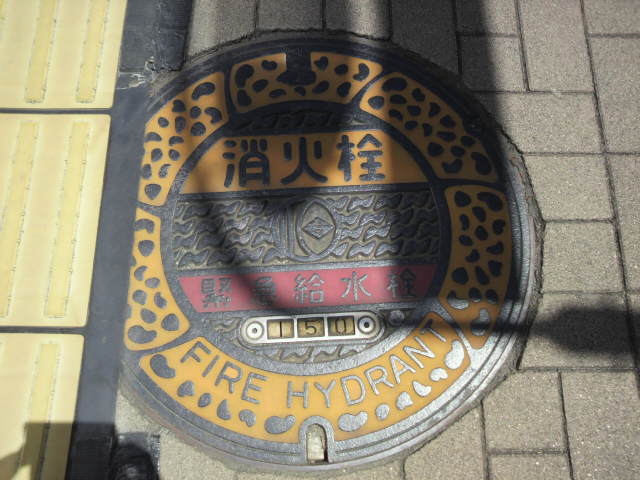消火栓と緊急給水栓を兼ねてます。そして点字ブロックに浸食されています(^-^; 点字ブロックを侵食しているマンホール蓋は多々ありますが(それはそれでどうかと思いますが)、点字ブロックに侵食されているのは珍しいかと思います。