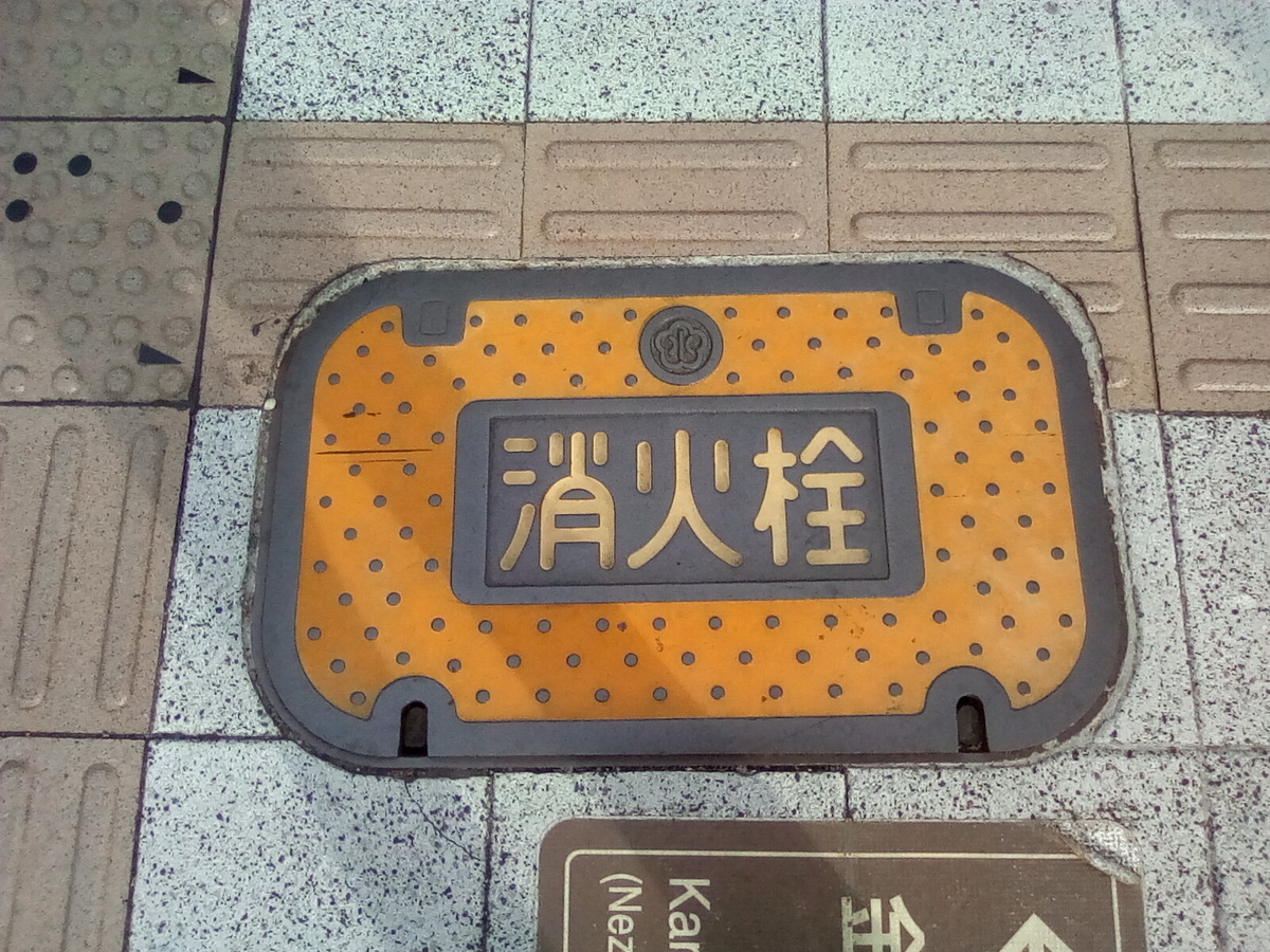 点字ブロックを侵略しているパターンです。梅の花の形の中に「水」と書かれたマーク付き。